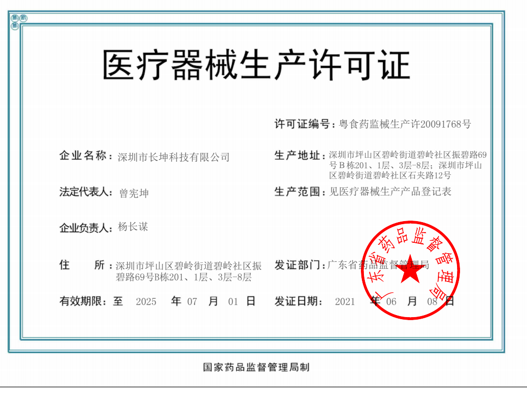 中文版|ENGLISH 服務熱線:0755-29100487 歡迎來到深圳市長坤科技有限公司官網!      粵深食藥監械經營備20151166號      粵食藥監械生產許20091768號